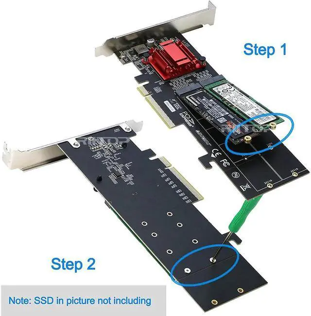 Dual NVMe PCIe Adapter, RIITOP M.2 NVMe SSD to PCI-e 3.1 x8/x16 Card Support M.2 (M Key) NVMe SSD 22110/2280/2260/2242/2230