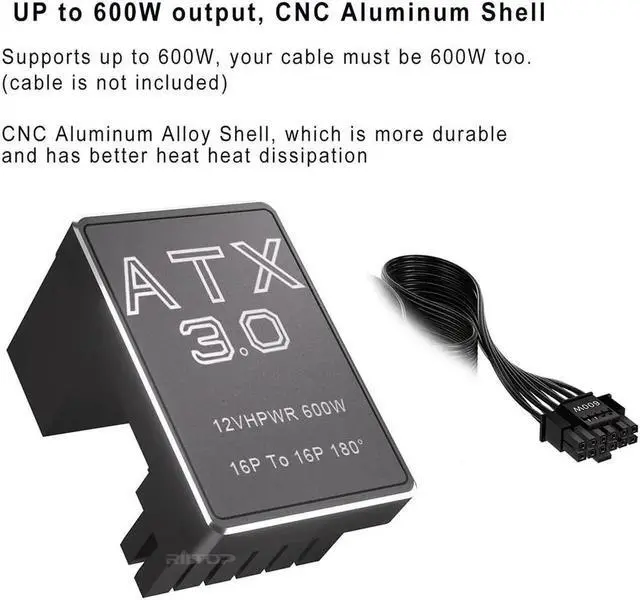 Supports UP to 600W, CNC Aluminum Shell for Heat Dissipation: The Shell of the 16 Pin adapter is made of aluminum alloy, which is more durable and has better heat heat dissipation, supports maximum power output of 600W, and please assure your power cable is 600W.