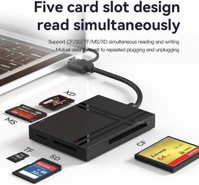 Supports five different types of cards: SD, Micro SD (TF), CF, MS, XD. Its compatible with both old and new devices, so you can use it with any device you have. Whether youre using an old camera or a new smartphone, this card reader will work perfectly.