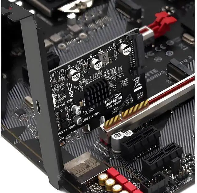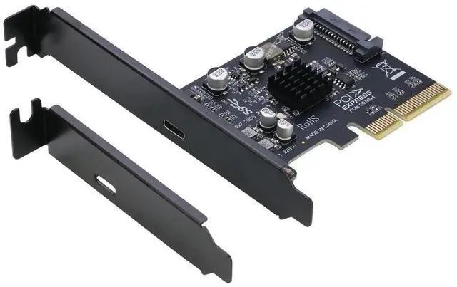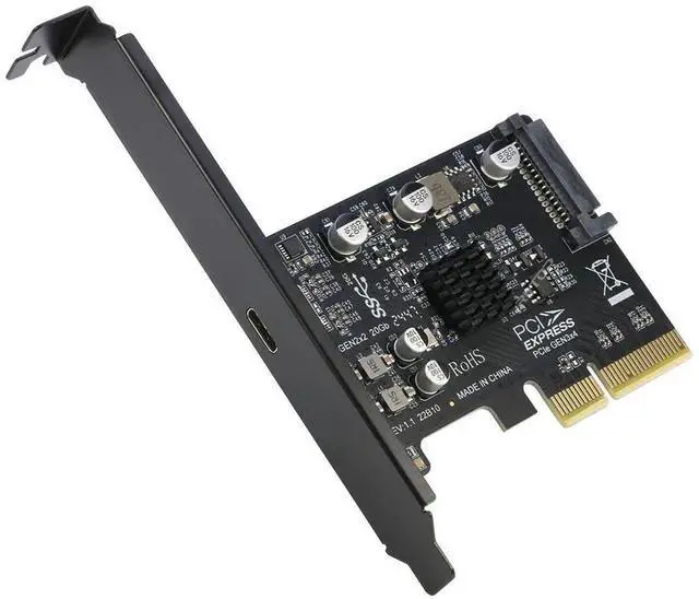 The adapter is a converter to convert the available PCI-E 4X/8X/16X of a motherboard into a USB 3.2 Gen2 Type-C 20Gbps USB-C port.