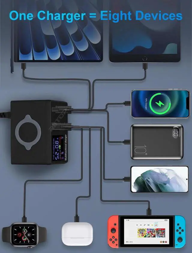 WIDE DEVICE COMPATIBILITY: Compatible with a wide range of devices, including smartphones, ipad, e-readers, and more, the charging station for multiple devices eliminates the need for multiple chargers, simplifying your charging setup.