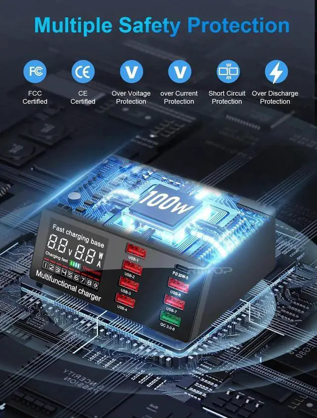 INTELLIGENT CHARGING TECHNOLOGY: Charging station for multiple devices core thickening is adopted, Equipped with advanced charging technology, each port adjusts the power output to ensure efficient and safe charging for your devices, without the risk of overloading or overheating.