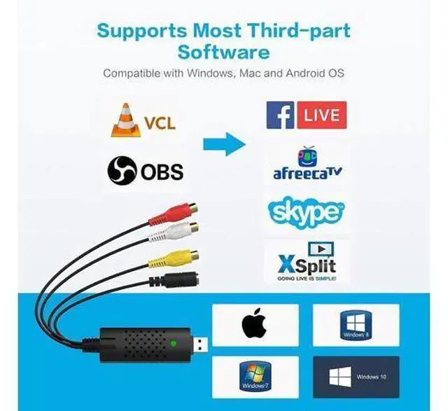 Capture Card: Our USB Video Capture Card converting anolog RCA composite input into HD 720P USB output and capturing audio without any sound card. Advanced signal processing technology provides you with great precision colors resolutions and detailsPlug and