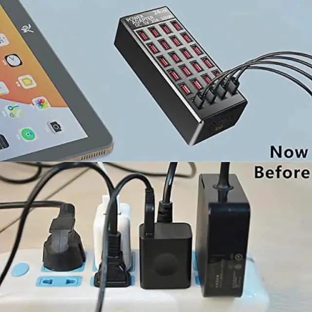 CIRCUIT PROTECTION: Support 1-24 usb equipment charge simultaneously, use of high strength and high temperature resistant PC fireproof material, it wad bult in protect from over current, over voltage, short circuit, overcharge and over load.