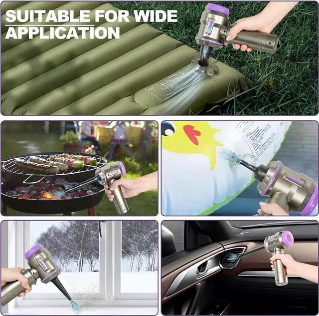[ Electric Air Duster for Computer Cleaning ]: Equipped with various brushes and nozzles, this handheld car vacuum cleaner tackles pet hair, crumbs, and dirt hidden in corners of keyboard, sofa and car interiors. The powerful wind with the long blowing nozzle can remove the dust off in a second. It' s a comprehensive cleaning solution for car detailing needs.