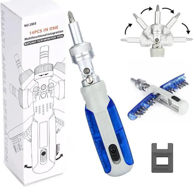 You will receive 14-in-1 Rotatable 180° Magnetic Ratchet Screwdriver Set, 1 ABS Screwdriver Handle with 14 pcs S2 alloy steel drill bits. S2 material is stronger and more durable than CR-V alloy. Interchangeable screwdrivers set. Ratchet screwdriver & bit set 14 pcs. Stored in handle for convenient access and carry: Including