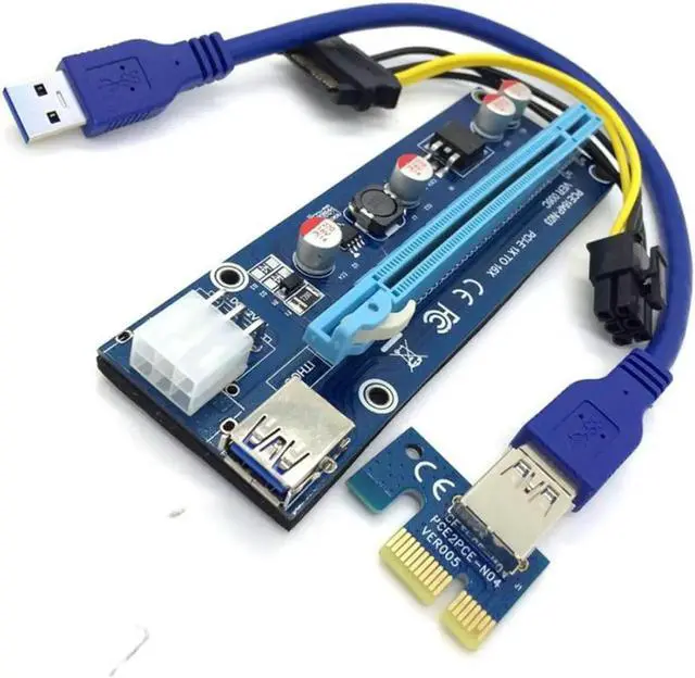 Pcie Pci-e Pci Express adapter expansion Card x1 To x16 GPU Usb 3.0 Extender converter Riser X1 X16 Card SATA 6Pin Power Cable