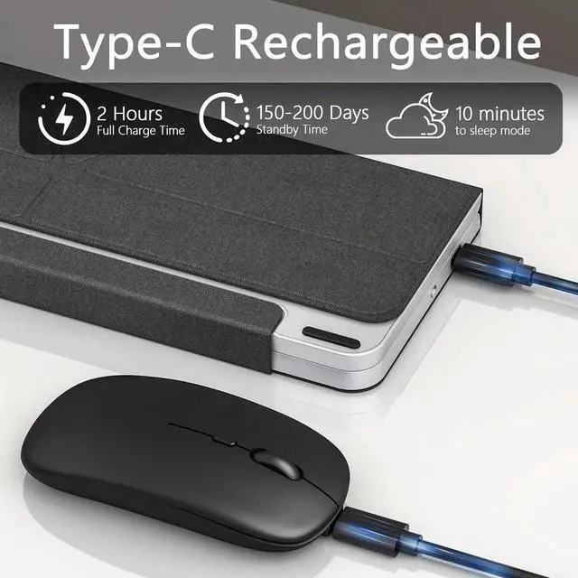 Skip constant charging: Built-in batteries in keyboard & mouse recharge fast (1-2 hours via included Type-C). Enjoy 120 days keyboard standby* and auto-sleep after 10 idle minutes. Tap any key to instantly wake perfect for forgetful users and saving power