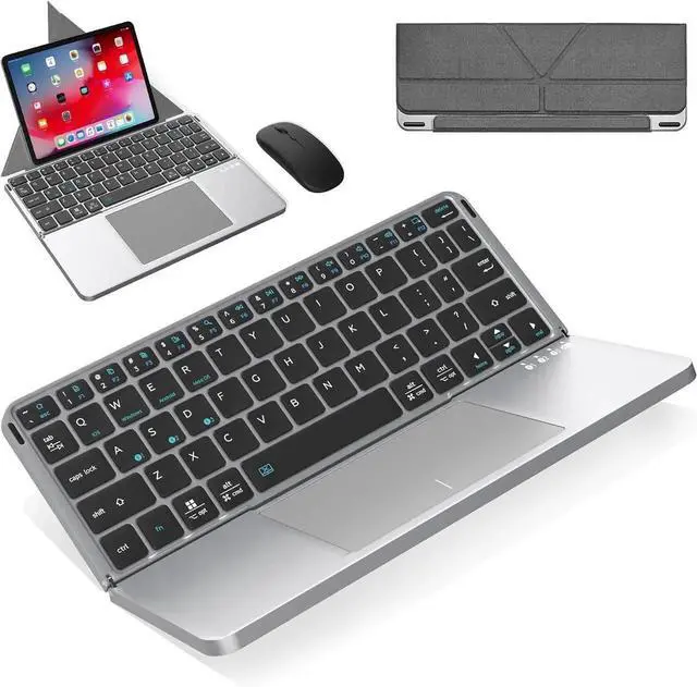 Foldable Keyboard with Touchpad and Mouse Combo, Portable Wireless Bluetooth Keyboard and Mouse Combo with Holster Stand for Business and Travel, Compatible with Mac Laptop iPad Tablet