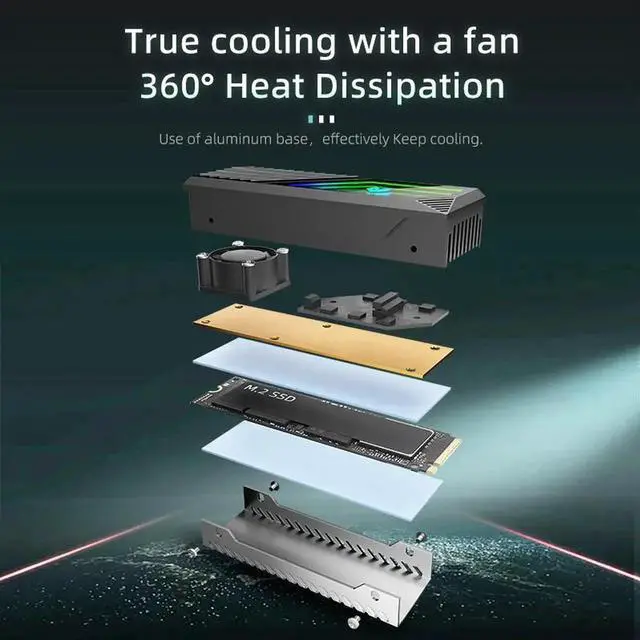 • True cooling with a fan 360° Heat Dissipation, Use of aluminum base,effectively Keep cooling.