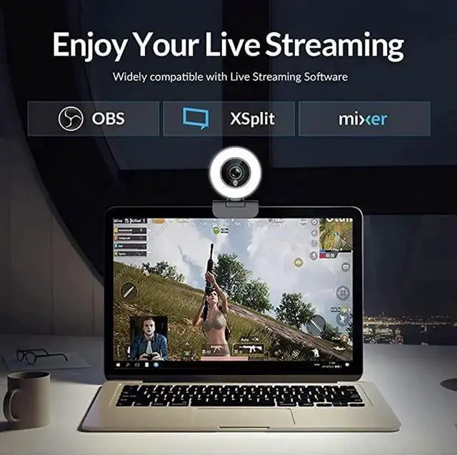 Streaming 1080P HD Webcam Built in Adjustable Ring Light and Mic. Advanced autofocus AF Web Camera for Google Meet Gamer Facebook YouTube Streamer