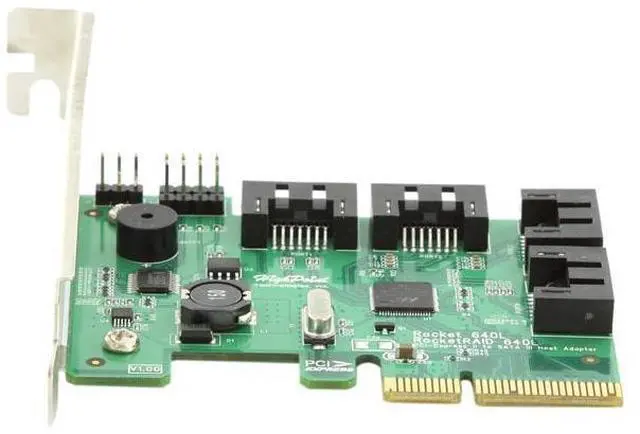 The 4-Port RocketRAID 640L is powered by HighPoint's industry-proven RAID Technology. The intuitive BIOS and web-based Management interfaces allow you to quickly and easily configure RAID 0, 1, 5, 10 and JBOD arrays.