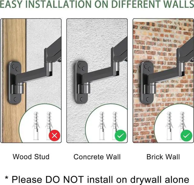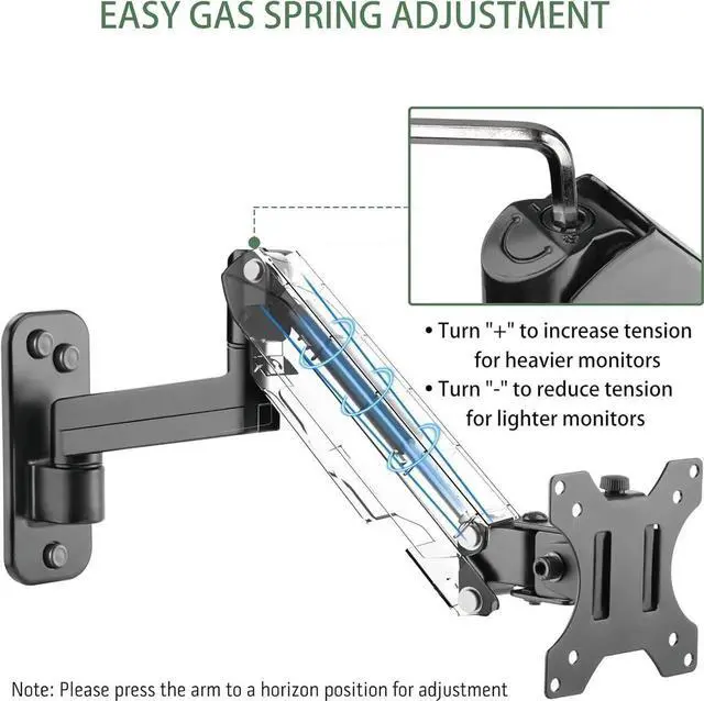 Constructed of high-grade steel, our computer monitor wall mount features premium gas spring system - after over 25,000 exercise tests - bearing a max weight capacity of 17.6 pounds to securely hold your display. It is also height adjustable in a range of 11 inch to reach an optimal position while working or gaming.