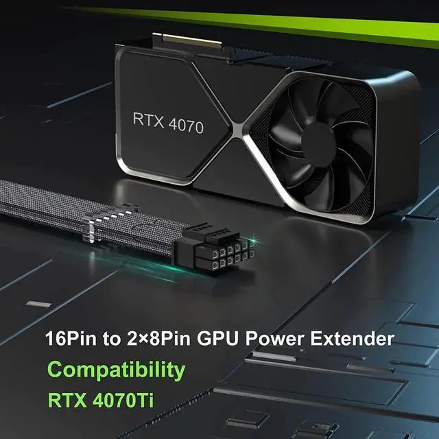 Specially Designed for RTX 4070Ti- Dual 8Pin female strengthened connector with high stability in performance that is especially suitable for GeForce 4070Ti. ONLY supports 12+4pin to 2x8Pin GPU RTX 4070Ti. *It is an Extension Cable. PLEASE do NOT plug it directly into the PSU. PLEASE use a sufficient power supply according to the manufacturer's instructions.