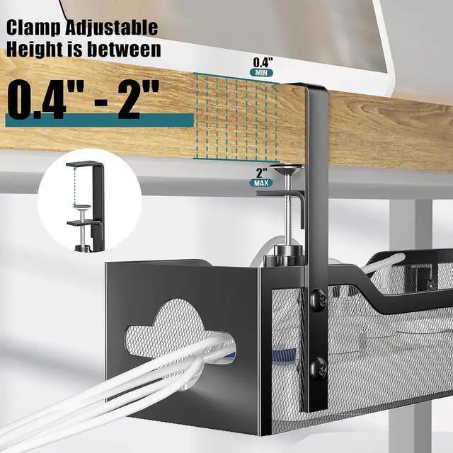 Ideal Wire OrganizerSuitable for your desk where the wire organizer is within 0.4" to 2" thick. Complies with rubber pads, effectively avoid the clip from scratching the desktop, so as not to damage your property.