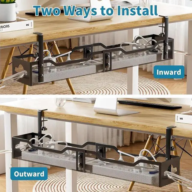 Inward or Outward InstallationTwo ways to install keep everything out of sight. Inward installation hides cables under desk, keeping your wires organized and reducing safety risks. Outward installation keeps your cords within reach for frequent operation to turn the power strip on and off, so you can enjoy a tidy workspace.