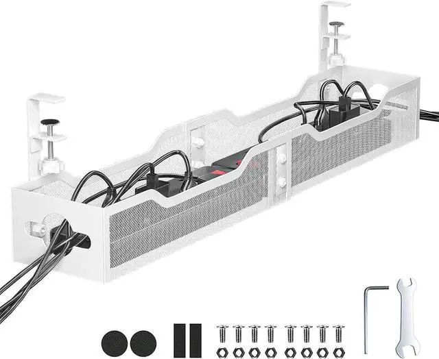 Save Storage SpaceNo more messy, tangled cords on your desk or floor, no more worry about kids tripping over or cords being sucked up by the vacuum cleaner. Our desk wire management can hide your data cables, power cords and outlet strips from your feet to keep your desk and floor clean and tidy.