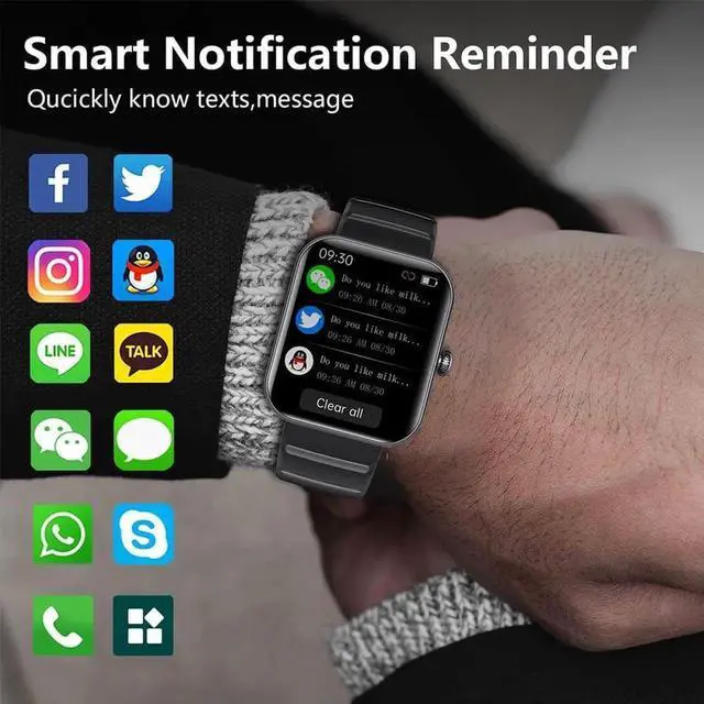 Smartwatches Support Phone Call Compatible with IOS Android PhonesThe sports smart watch is compatible with most iOS 10.0 and Android 5.0 and above and HarmonyOS systems smartphones. Smartwatch connecting to your phone via Bluetooth, you can directly use the smartwatches to answer or make calls, read messages and notifications from apps like Facebook, WhatsApp, Instagram, TikTok and more.