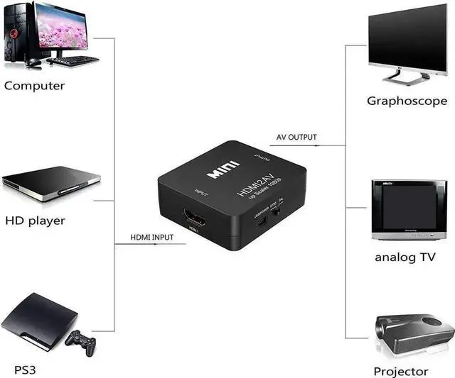 It converts quality HDMI video signal into normal CVBS signal(standard-definition 480i,576i),for devices such as TV, VHS VCR, DVD recorders,etc, that support NTSC and PAL.