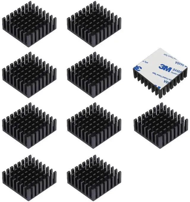 10-Piece Value Kit: Complete set of 10 small aluminum heatsinks with pre-cut thermal adhesive tape for multiple projects and replacements.