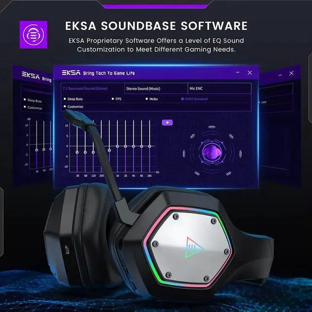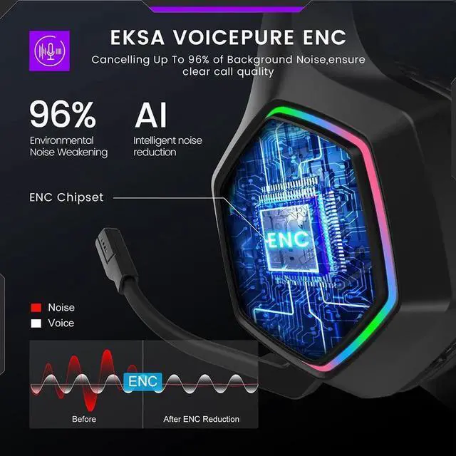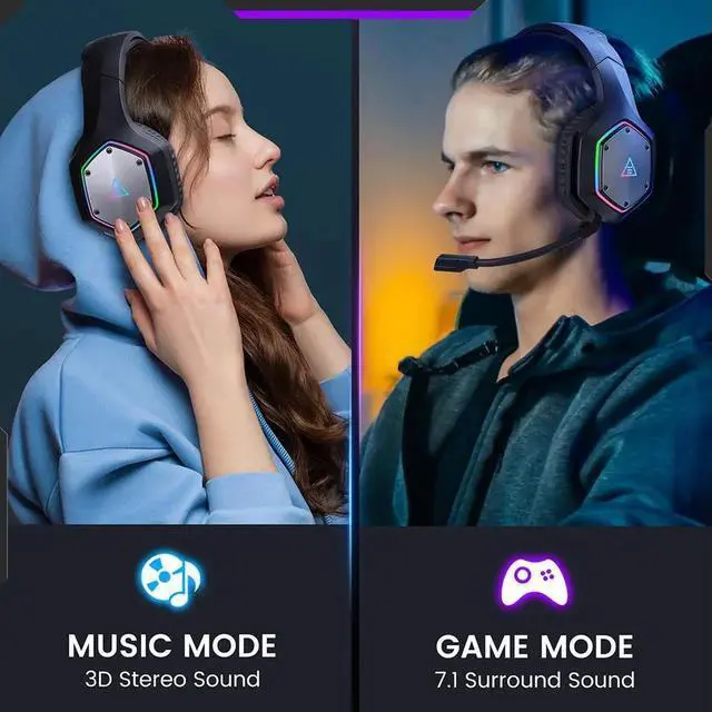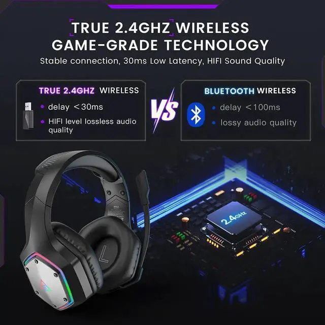 Wireless Gaming Headset, 2.4GHz USB Gaming Headphones with Microphone for PC, PS5, PS4, Nintendo Switch, 7.1 Surround Sound Gaming Headset, RGB Light, Ergonomic Design, 3.5mm Wired for Xbox Serie