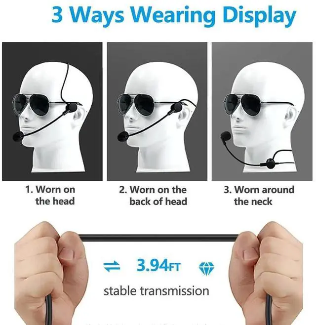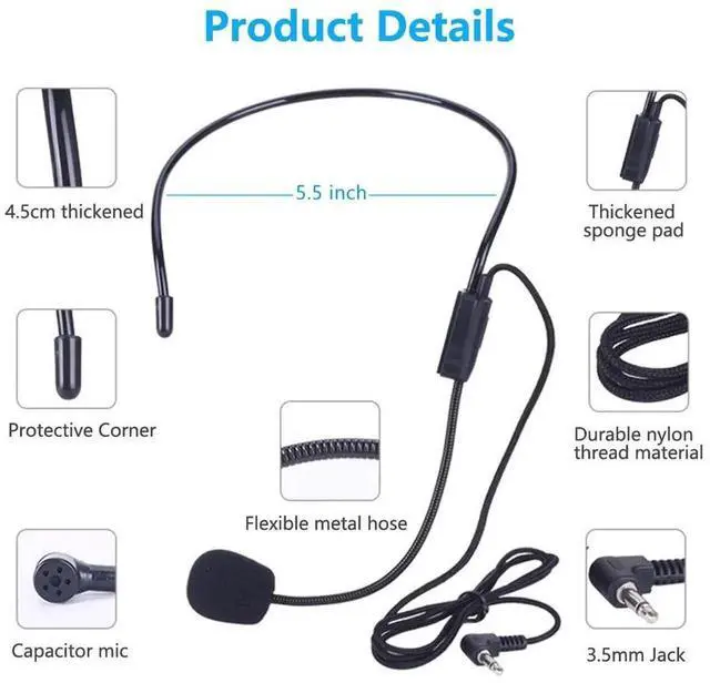 2Pcs Microphone Headset Mic, Flexible Wired Boom for Voice Amplifier, 3.5 mm Connector Jack Headset Microphone for Singing, Speaking, Teachers, Coaches, Presentations, Seniors and More