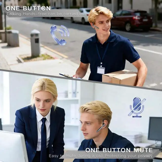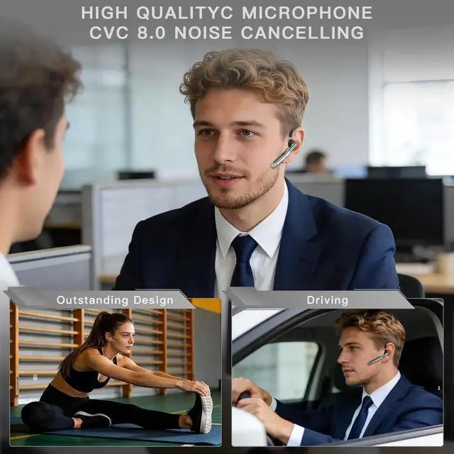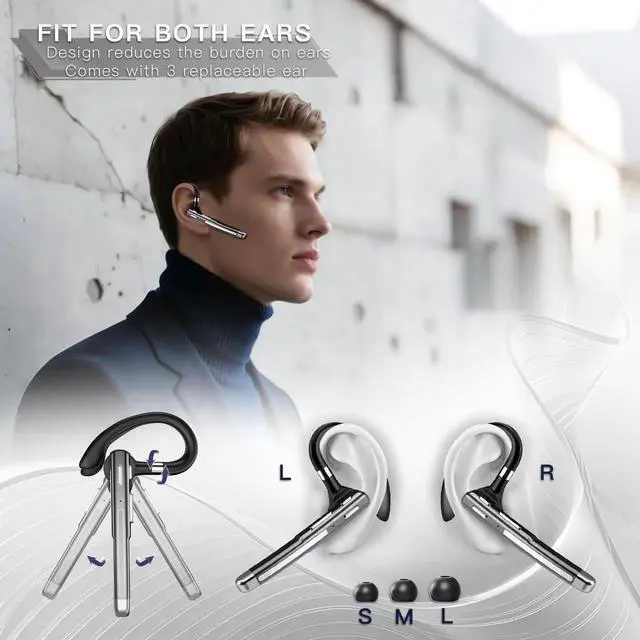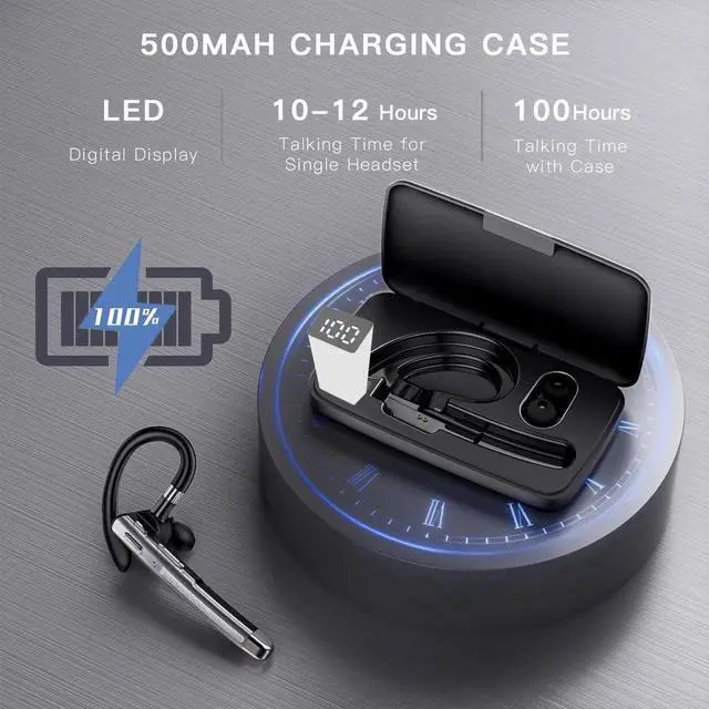 wusu Bluetooth Earpiece V6.1,Wireless Handsfree Headset with Mic,CVC8.0 Noise Cancelling Headset,100 Hrs Talk Time Driving Headset for Android, iOS,Laptop,Office,Truck Driver,Crystal Black