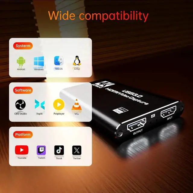 Wide CompatibilityWorks with Windows, macOS, and Linux. Compatible with OBS, VLC, Zoom, and more. Compatible with PS4, PS5, Xbox, Switch, DSLR cameras, and set-top boxes