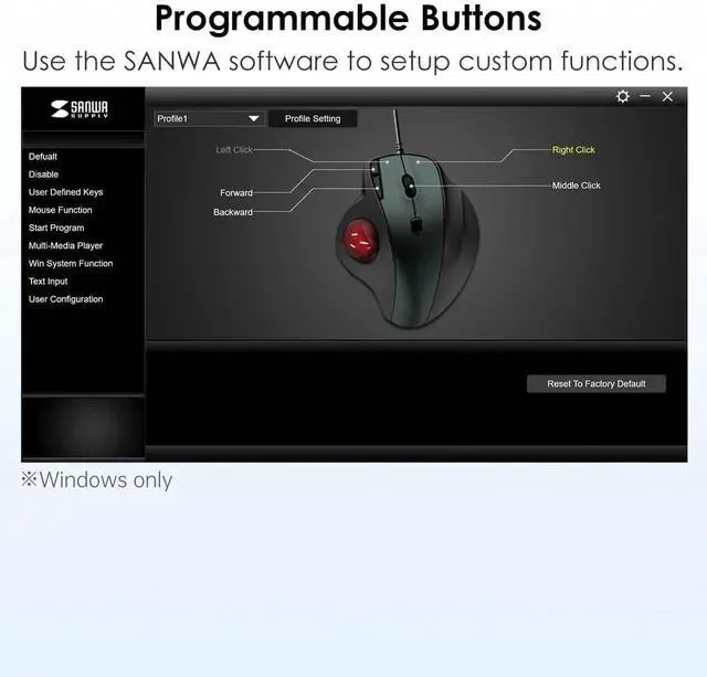 Programmable Buttons with Software- This SANWA ergonomic trackball mouse also has a forward/back function. Besides, it is programmable for different functions. Download SANWA Trackball mouse software to customize your mouse buttons and increase work efficiency.