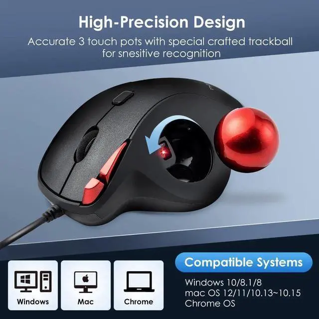 Wide Compatibility System- Our wired roller ball mouse is compatible with Windows 11/10/ 8.1 /8, Mac OS 12/11/ 10.12 ~ 10.15, Chrome OS, and the versions below. Great idea for limited space, not only work on flat surfaces but also on your leg, sofa, bed, carpet, etc. Full control of everything within your fingers.