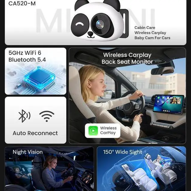 Wireless CarPlay portable wireless car-mounted care CarPlay adapter car-mounted camera rear seat baby