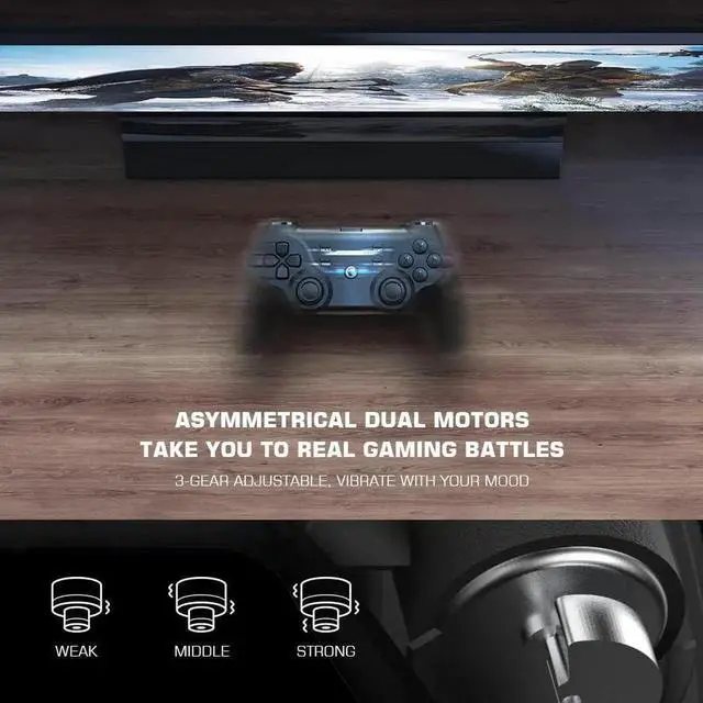 Double Motors Vibration FunctionBuilt-in dual asymmetrical motors, provide a more dynamic and delicate vibration by creating different vibration strength on the left and right grips. Let the gamer be immersed and bring them a more realistic gaming experience.