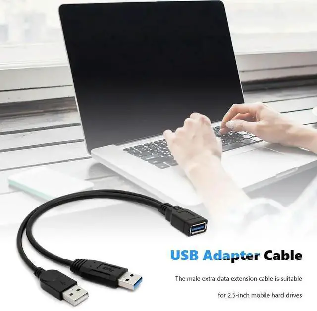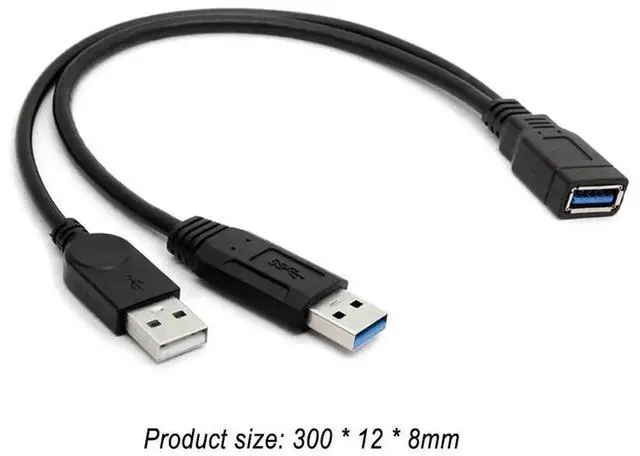 Data Y Extension Splitter Cable USB 3.0 to Dual USB Extra Power Data Extension Cable for 2.5 inch External HDD