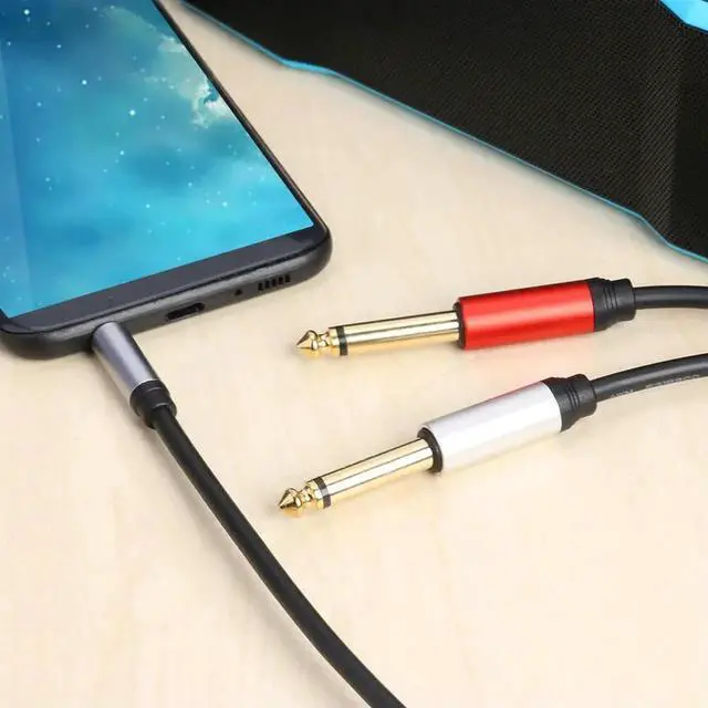 1.8m 3.5mm To Double 6.35mm TRS Cable Gold Plated 3.5mm TRS To 6.35mm TS Adapter Audio Stereo Cable for Mixer Amplifier Speaker