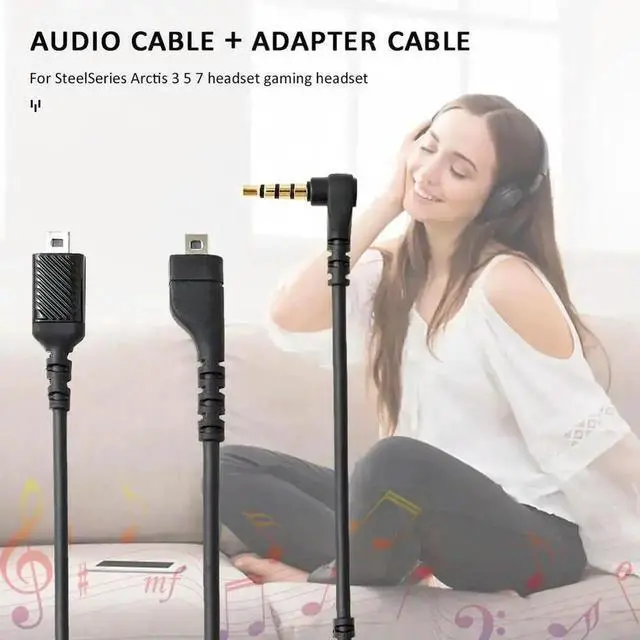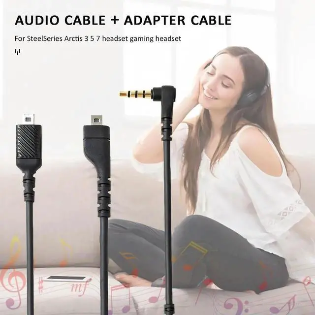 Replacement Audio Cable+3.5mm Male to Female Cable for SteelSeries Arctis 7 5 3