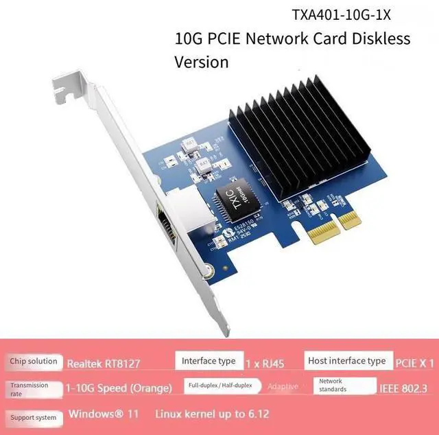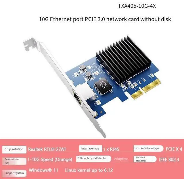 The transmission rate reaches up to 10Gbps (10000Mbps), and it is backward compatible with 5G/2.5G/1G/100M.