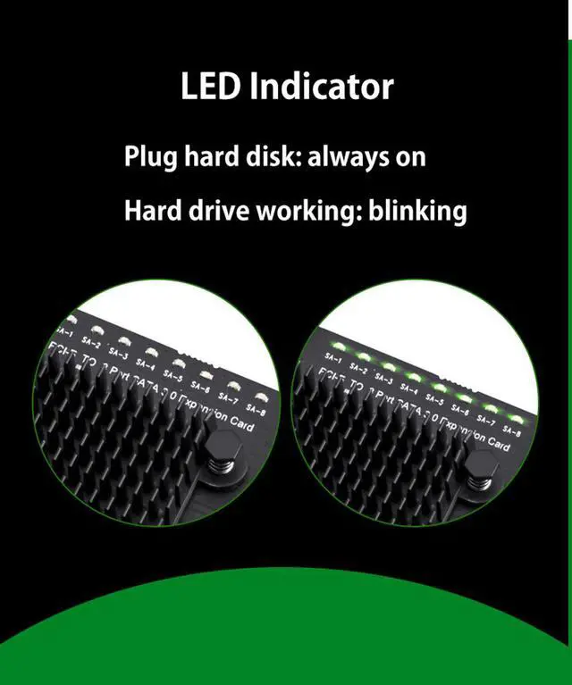 The board is equipped with 2 SFF-8087 Mini-SAS interfaces, each of which can connect to 4 SATA hard drives.