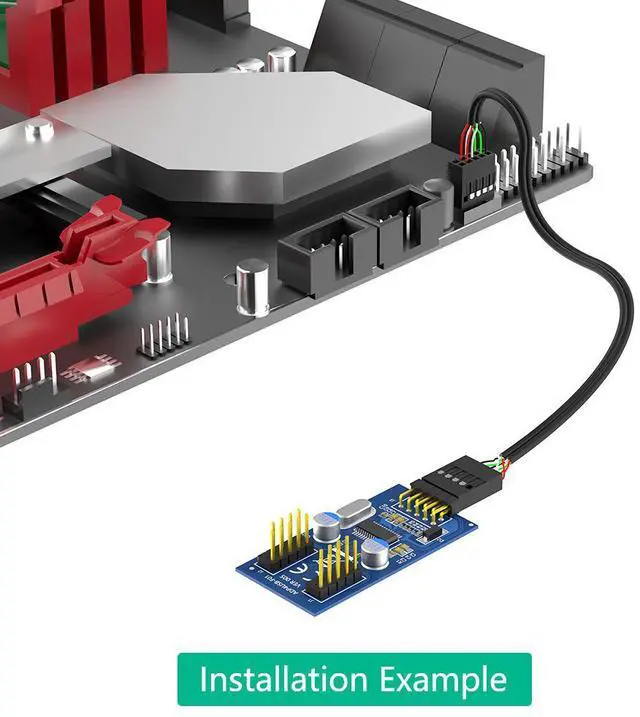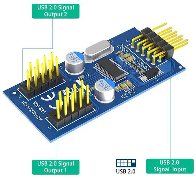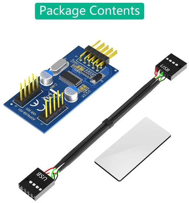 - Expands one 9-pin USB 2.0 header on your motherboard to two headers