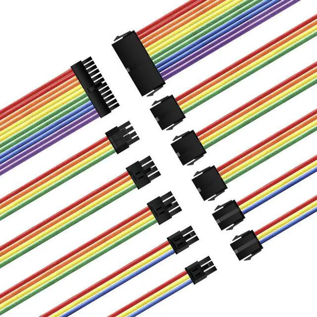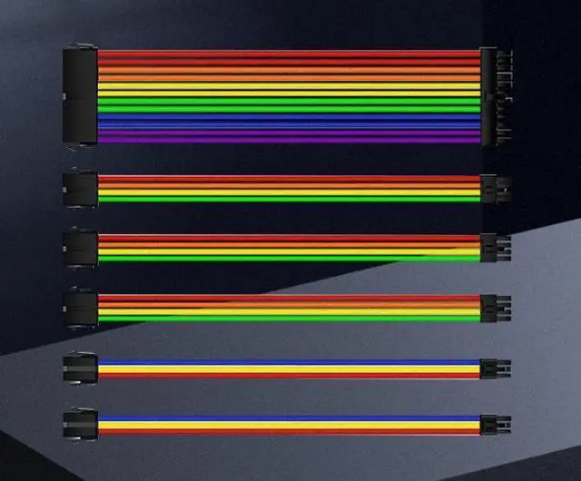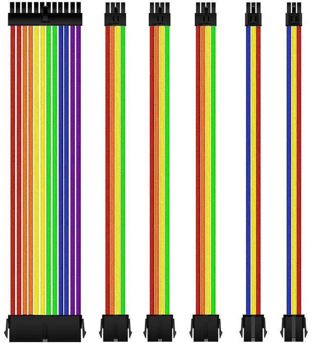 wusu 6-piece neon-colored adapter cables for motherboard power supply, graphics card extension, and 24-pin computer wire harness