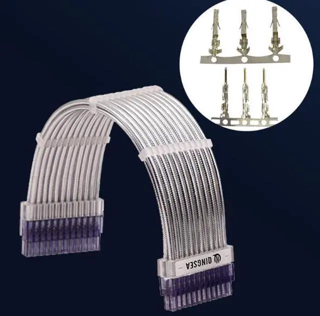 wusu Computer cable power supply motherboard 24-pin extension cable PC shell arc-shaped bright braided cable adapter kit chassis cable copper core