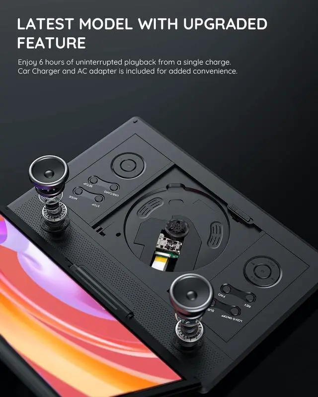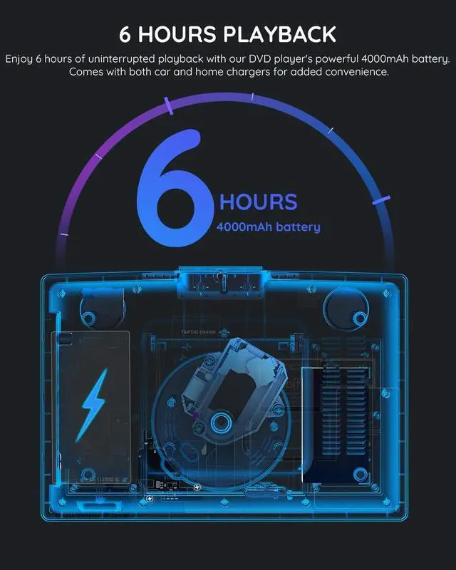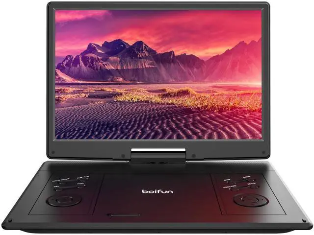 SCREEN QUALITYWith advanced screen tech, the 14.1" swivel screen of BOIFUN DVD player shines brighter and clearer than its predecessors. Enjoy clarity and vividness with its 1366*768 resolution ^^ LONG-LASTING POWER 4, 000mAh battery, 6 hours of playtime on a single charge. Includes car charger and AC adapter for ultimate convenience. Great way for extended trips and prolonged entertainment ^^ SUPPORTED FORMATCompatible file format for BOIFUN portable