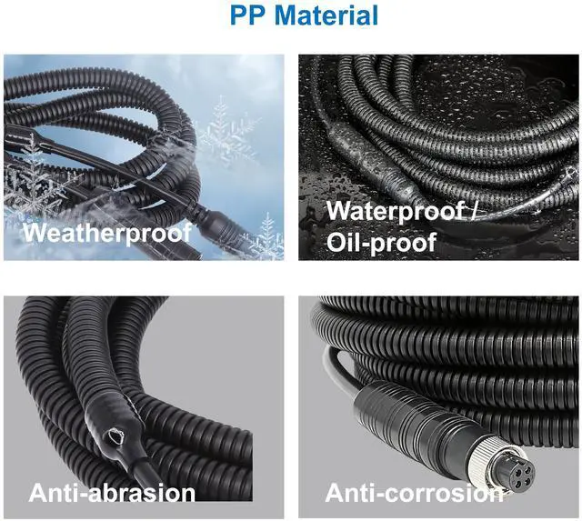 Quality: The backup camera extension cable is snowproof, windproof, waterproof, and shockproof, making it suitable for outdoor applications even in severe weather. Protected by anti-abrasion and anti-corrosion conduit, it can be used in various applications such as automobiles, construction machines, and agricultural equipment.
