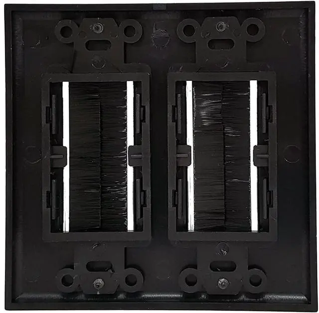The brush wall plate mounts flush to standard sized 2 gang (double) wall plate brackets and gang boxes.