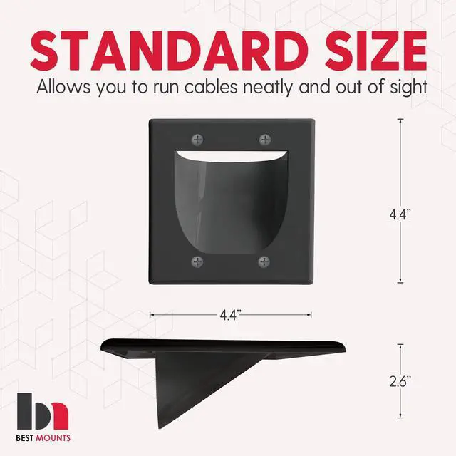 This dual gang wall cable pass through is the perfect solution to conceal cords on wall for up to 4 low voltage audio/video cables behind your wall-mounted flat panel TV (may hold more than 4 cables depending on type).