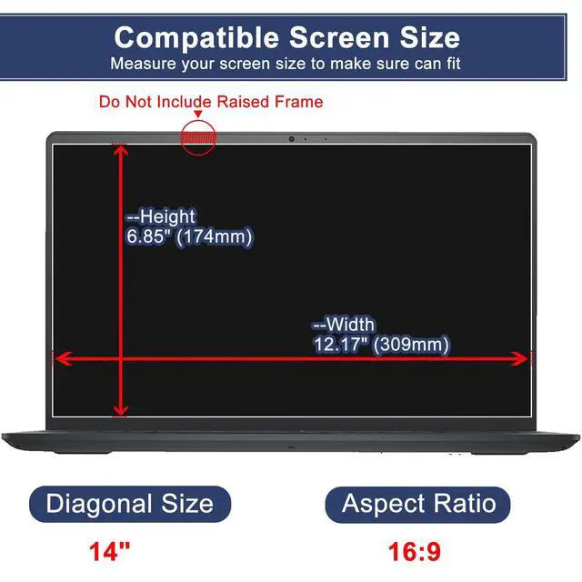 (Please measure & choose the correct size according to the product image 2), PRODUCT SIZE (Width x Height): 16 x 13.98 x 0.01 inches, COMPATIBLE: All 14-inch laptops with 16:9 Ratio Screen (Not including the Raised Frame)
