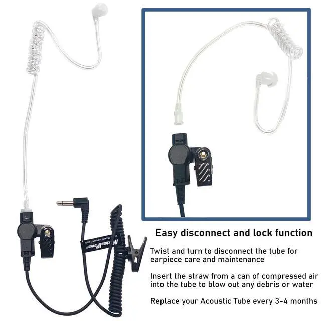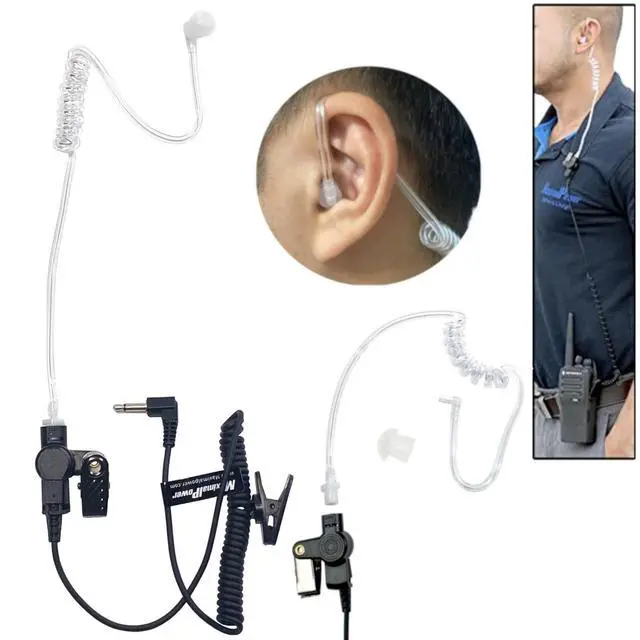 MaximalPower 3.5 mm RECEIVER/LISTEN ONLY surveillance headset earpiece speaker with hearing protection with sound press certification and clear coil tube earbud audio kit for two-way radios, transceivers and radio speaker mics jacks fits standard two-way radios transceivers and radio speaker mics for such as MOTOROLA, KENWOOD, ICOM, ADI, ALINCO, and YAESU. This earpiece also works with MP3 players, remote mics and other audio devices or accessories with 3.5 mm earphone jack connector. This surveillance headset is rugged design, polyurethane jacketed and made with heavy duty material with superb audio quality.