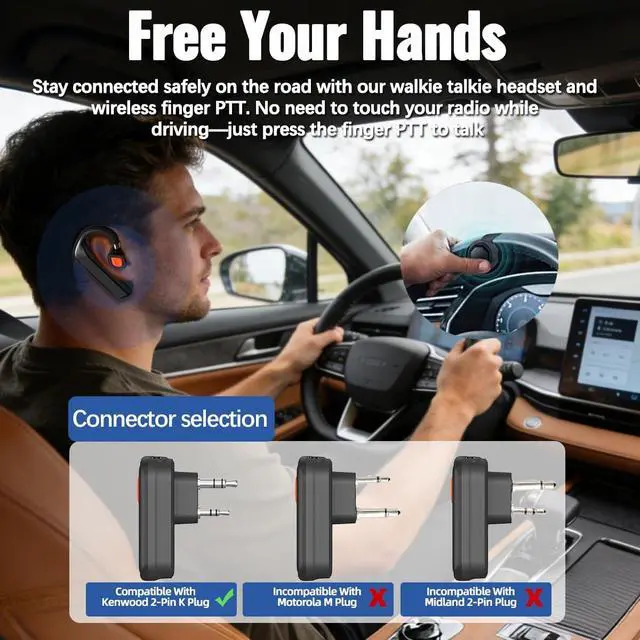 Comfortable & DurableThis wireless headset features an ergonomic, lightweight design for a soft, secure fit. It offers zero-pressure comfort during long outdoor work or driving, allowing you to focus on clear communication.