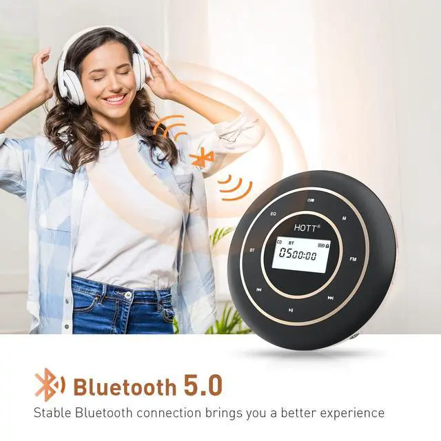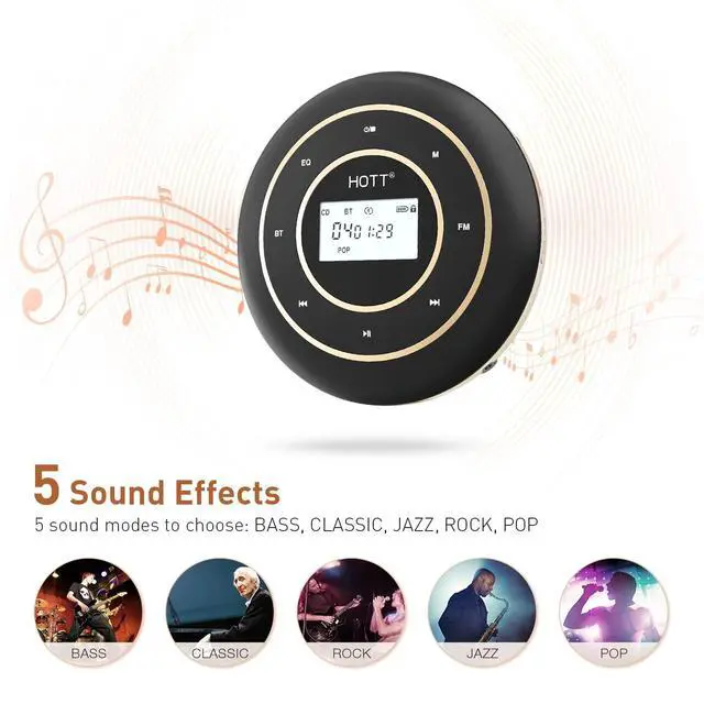 Portable and Wide Compatibility HOTT CD player can support most CD formats, such as CD, MP3, CD-RW, CD-R, and WMA. 5 Sound Effects: BBS, Pop, Jazz, Rock, Classic. It is a great car CD player for travel. When you drive the car outside with your family or friends, you can share music together on the road.