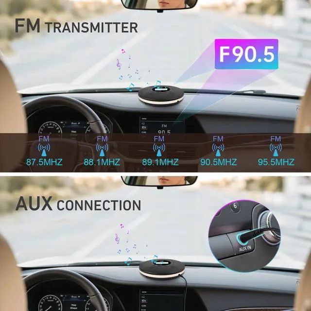 For cars without FM function, it has 3.5 mm Aux input/out jack to connect your car with the inclued Aux cable.