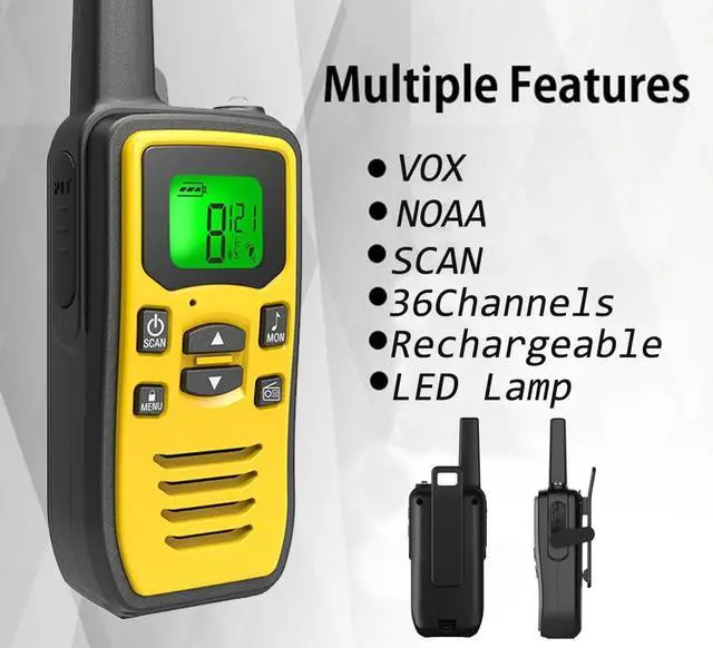 ^^ High Visibility: The walkie talkies come with a bold yellow faceplate for high visibility, ensuring you can easily locate and use them in various scenarios such as camping, hiking, hunting, or other working conditions.